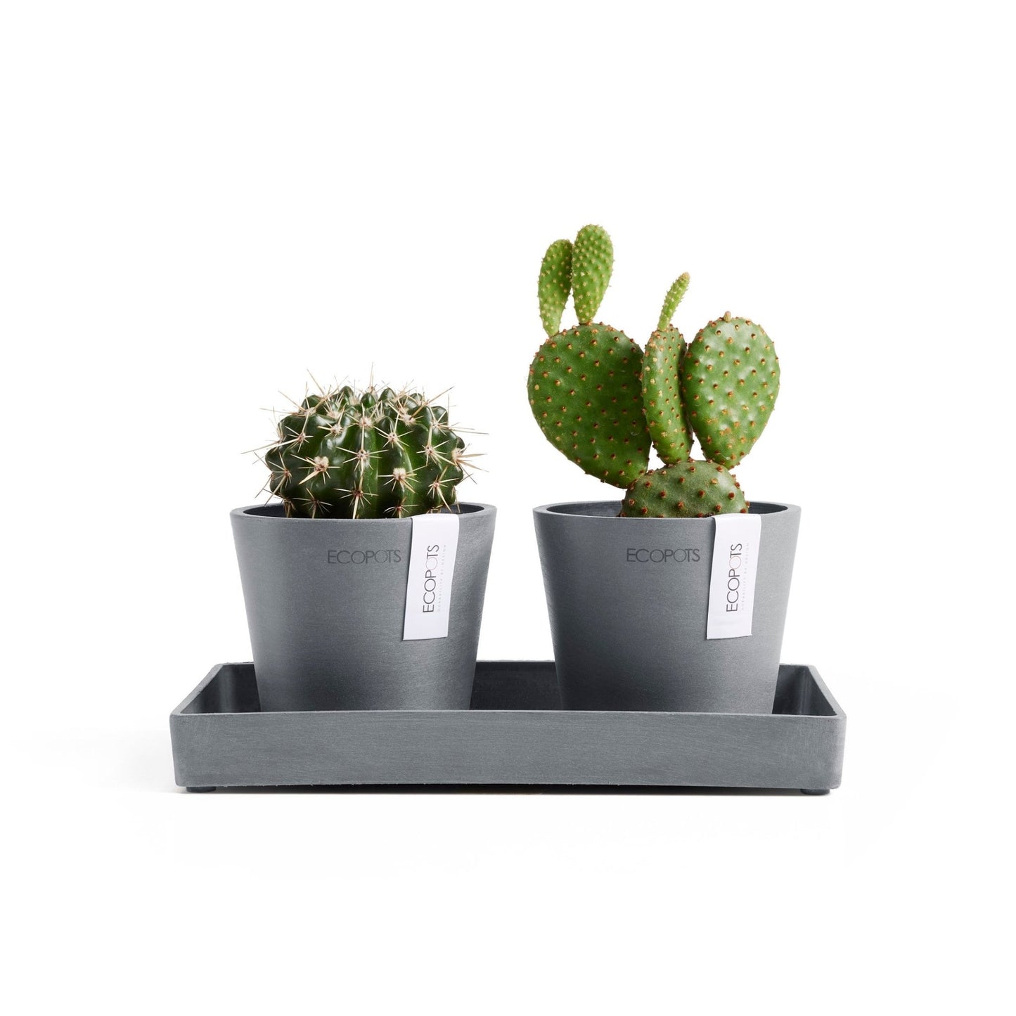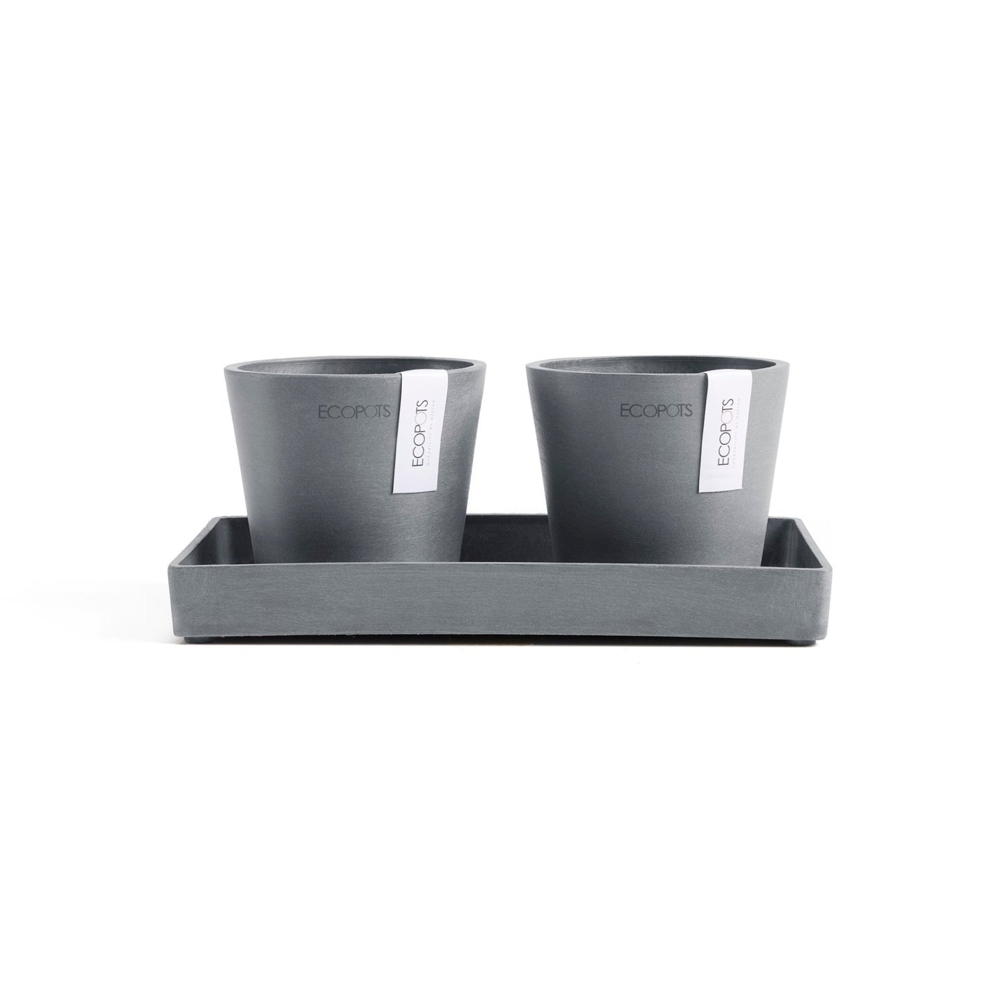 Kukkaruukku Amsterdam 10,5cm 2kpl & esillepanotarjotin 25cm siniharmaa