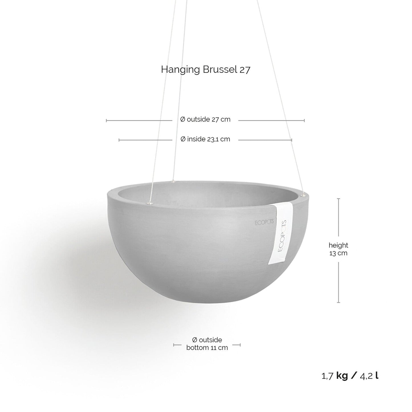 Valitse Ecopots Brysseli, kun haluat lisätä kauneutta ja käytännöllisyyttä puutarhaasi tai parvekkeellesi. Kestävät materiaalit ja integroitu ripustusjärjestelmä tekevät tästä modernista kukkaruukusta ihanteellisen ratkaisun kaikille kasvien ystäville.